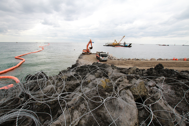 The proposed naval base is being built where the river enters the sea on the over one kilometer long area known as the Gureombi Rock.
