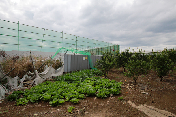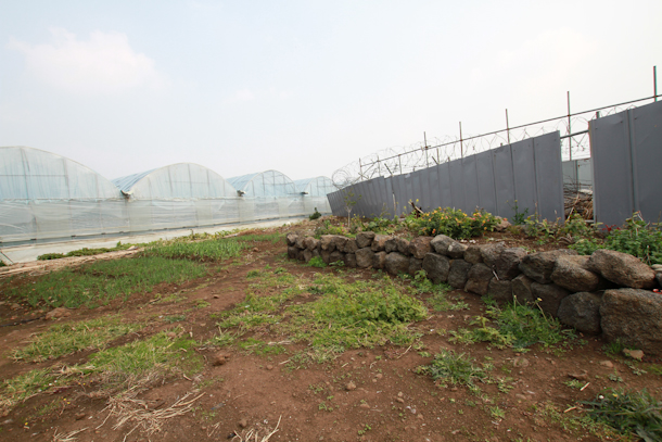 Greenhouses and fields have been removed to make way for the construction of the naval base